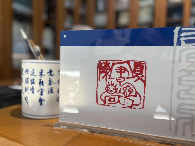 “陈夏书斋”的典籍上,都印有一方独有的钤记。钤记上方写有“陈”“夏”两个姓氏,姓氏之间是一个“书”字,“书”又被一个方框半包了起来。在钤记下方,一位男士和一位女士坐在一王人看书,男士眼前的书上有画,女士眼前则是一册笔墨书。都门藏书楼的职责主说念主员先容,这是陈平原和夏晓虹的藏书章,“陈夏书斋”的总共典籍都印着这方钤记。